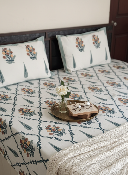 Utsav | Artisanal Jaipuri Print Bedsheet | 100% Cotton Queen/King Size Bedding